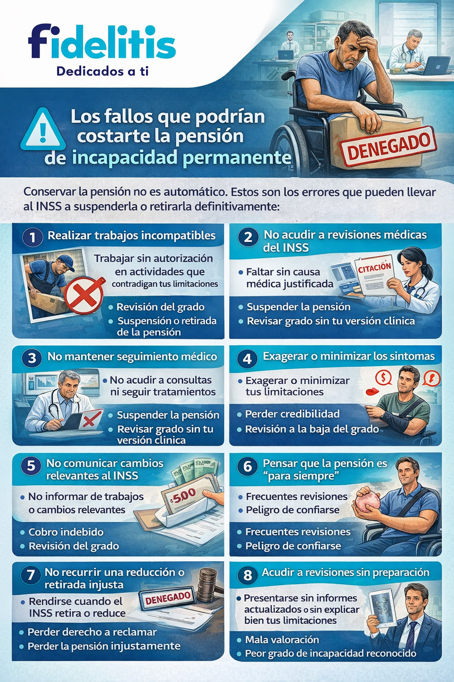 Si tienes una incapacidad permanente y te preocupa que una revisión o un error pueda hacerte perder la pensión, en Fidelitis te ayudamos a proteger tus derechos.