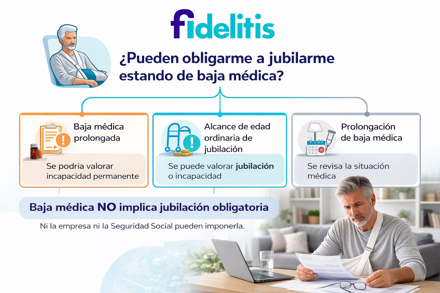 Si estás de baja médica desde hace tiempo y tienes dudas sobre incapacidad permanente, jubilación o tus derechos frente al INSS, en Fidelitis podemos ayudarte.